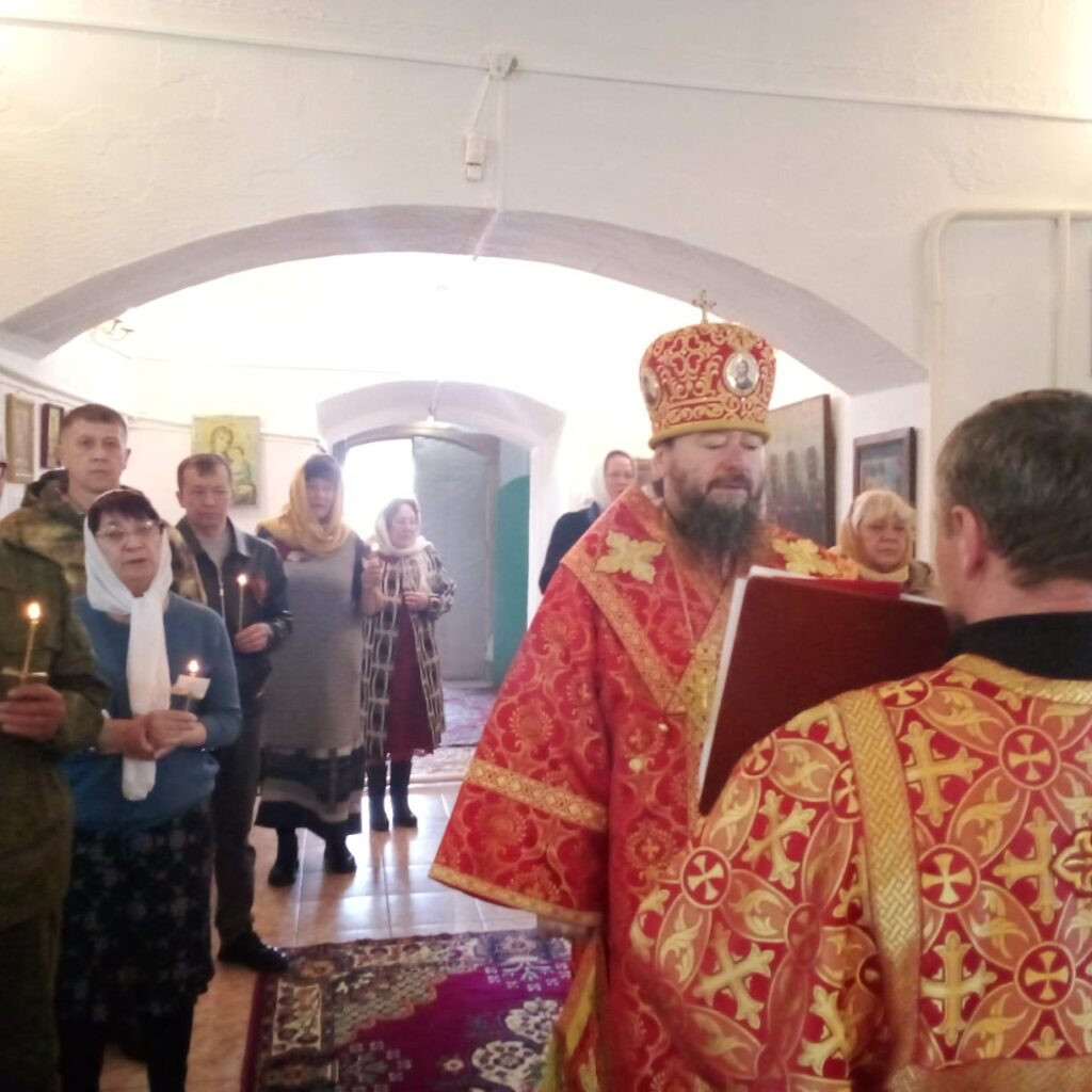 Его Преосвященству сослужили: благочинный Чернышевского церковного округа, настоятель храма великомученика Георгия Победоносца г. Сретенск протоиерей Андрей Кисов, ключарь кафедрального собора Воскресения Христова г. Нерчинск иерей Роман Пичуев.